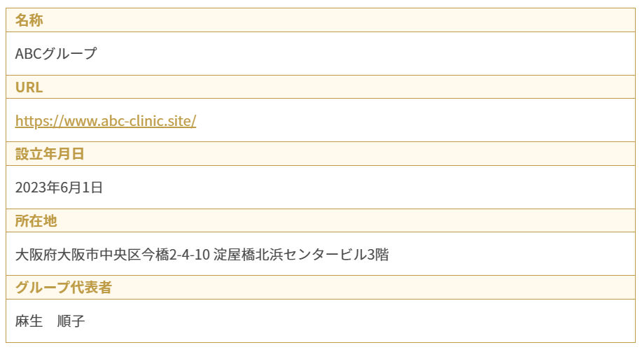 ABC麻生美容クリニックグループ | 大阪府大阪市中央区淀屋橋北浜センタービル3階 | 美容医療全般 |