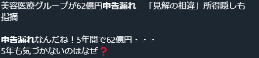 大阪国税局から62億円の申告漏れを指摘され、話題となっている「麻生美容クリニックグループ」。