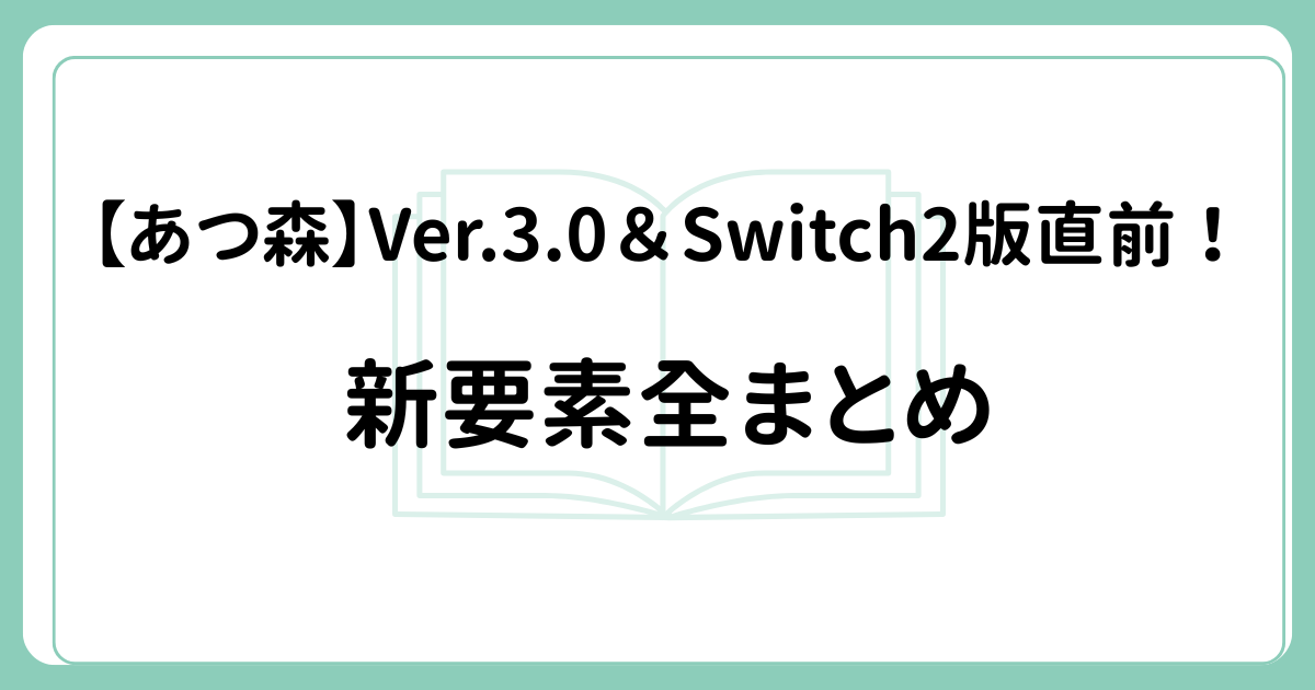 【あつ森】Ver.3.0&Switch2版直前!新要素全まとめ
