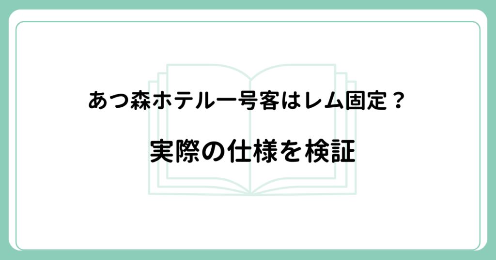 あつ森ホテル一号客はレム固定?実際の仕様を検証