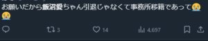 飯沼愛さんのファンの中には消えないでという思いの方もいるようです。