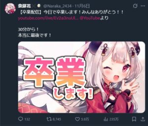奈羅花さんがにじさんじを卒業したのは、2025年11月6日です。