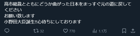総裁選を機にますます注目があつまる小野田紀美議員。やはり世間からは期待の声が高まっているようです。